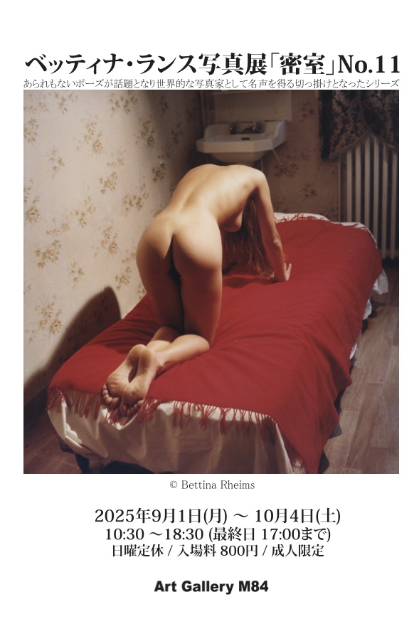 日本でヌード作品は、もう見ることが出来なくなるのだろうか? 綺麗なヌード写真を見たいと思っている人がいるのに、日本でヌード作品の展示は激減しています。 そんなことを思いながら「シャネル(CHANEL)」のムービーを手掛けたことで知られ、『ヴォーグ』『フィガロ』などの雑誌で活躍するフランスを代表する女性写真家 ベッティナ・ランス(Bettina Rheims)の当ギャラリー9回目となる個展です。入場は、成人限定とさせて頂きます。 フランスを代表する女性写真家ベッティナ・ランスは、セルジュ・ブラムリーの小説とコラボレーションによる1990年から1992年に制作されたパリの女性達を撮影したヌード写真集(Chambre Close/シャンブル・クローズ=密室)で、あられもないポーズが話題となりヨーロッパだけでなく米国、日本、韓国、オーストラリア、モスクワでもベストセラーとなり世界中にその名が広がったと言います。世界的な写真家として名声を得る切っ掛けとなった貴重な作品、約30点を展示します。 作品の中には、「ランスでなければ写せない」とまで言われるしぐさや眼差しとともに、本能的な女性達の姿を捉えるベッティナ・ランスの魅力に迫りたいと思います。 1952年 France・Paris生まれ。 |